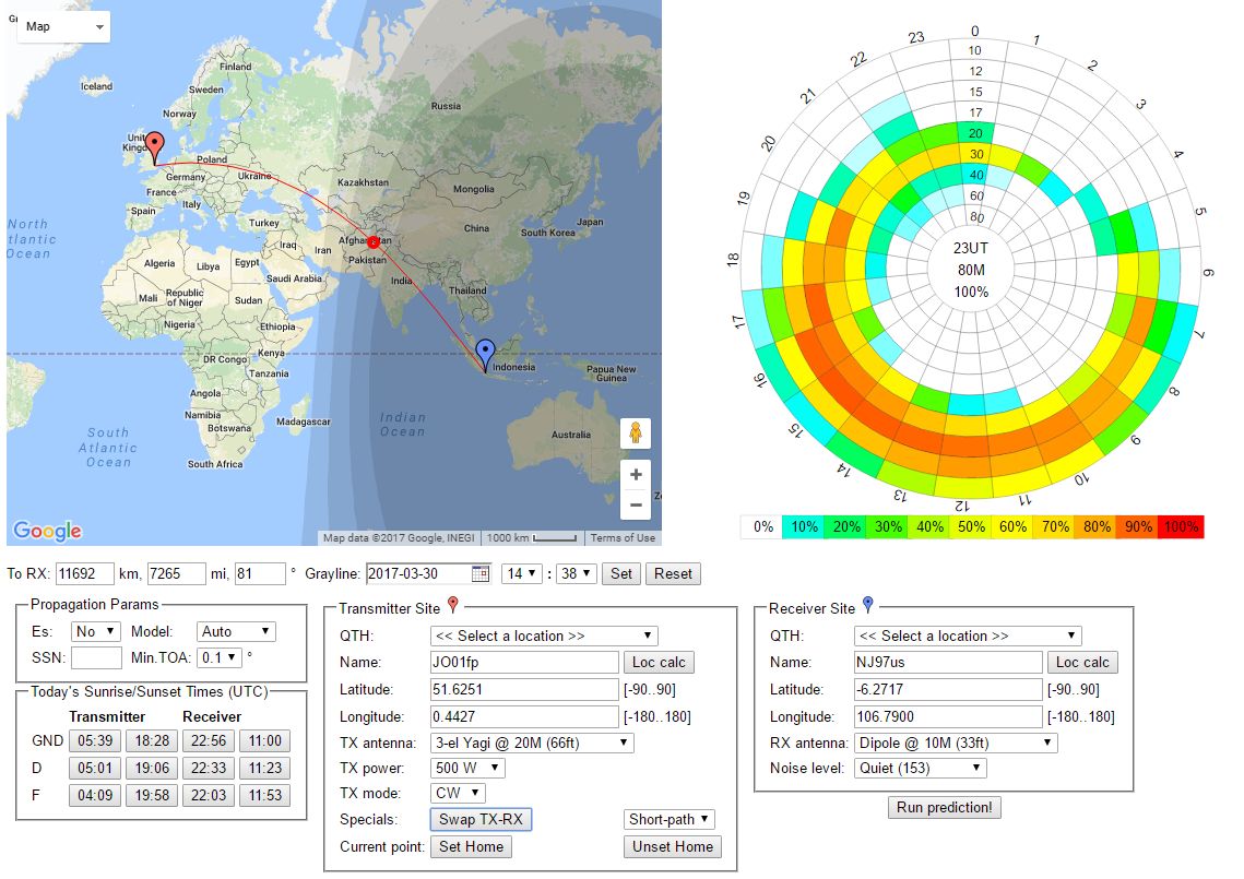 VOACAP Online shows the specific route forecast